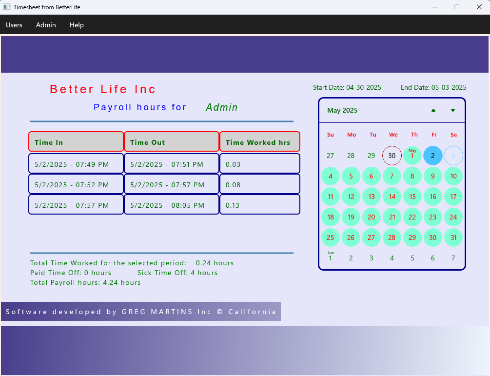 Primenolly Timesheet App is a Business Application that runs on Windows 11 and Windows 10 computers only.